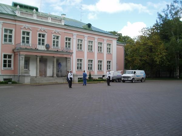 Vabariigi Presidendi Kantselei hoone fassaadi pesu ja ipregneerimine Kadriorus. Aadress A. Wizenbergi tn. 39 Tallinn. Fassaadi kuumvesisurvepesu kasutades fassaadipesuainet.
