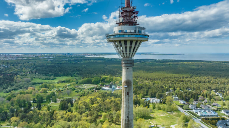 Tallinna Teletorni fassaadi puhastamine ja värvimine (2024 – 2025). Aadress Kloostrimetsa tee 58 A Tallinn. Kuumvesikõrgsurvepesu. Maht ca 5500 m2.