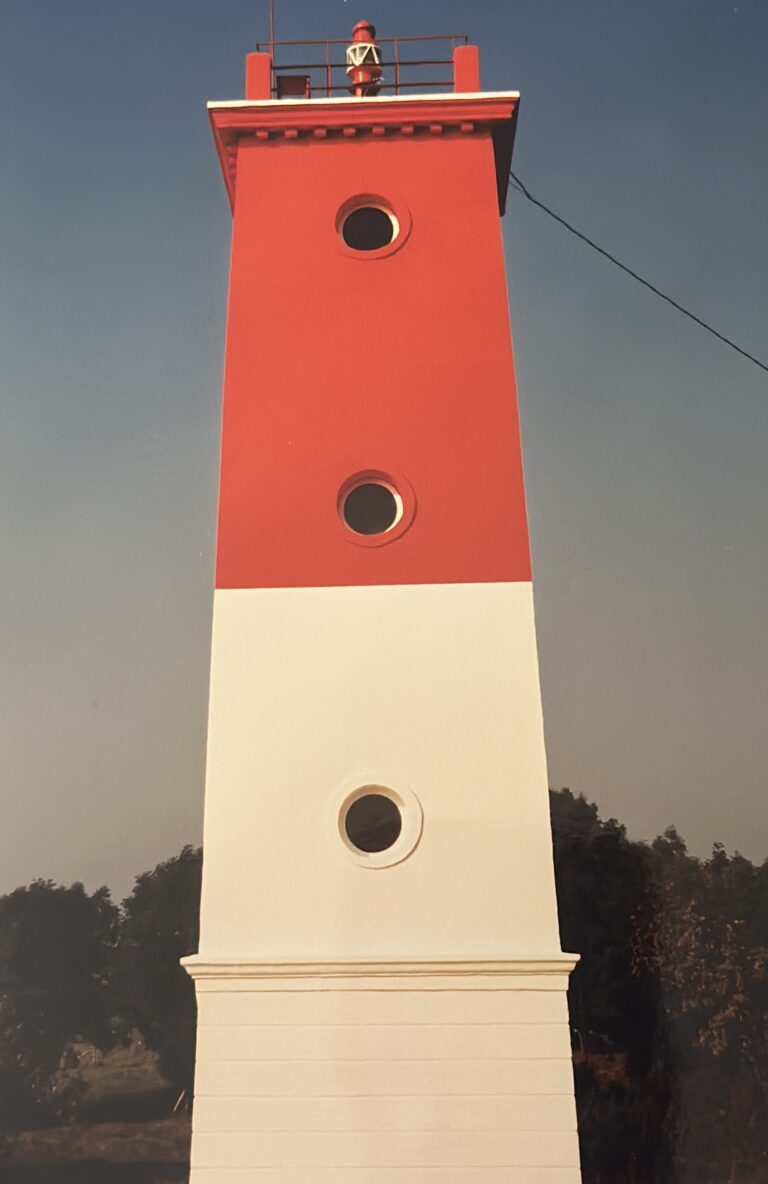 Virtsu tuletorni puhastamine. Aadress Majaka tn. 36 Virtsu, Pärnu maakond. Kuivliivapritsimeetod. Betoonpindade puhastamine värvist, metallkonstruktsioonide puhastamine roostest ja vanast värvist.