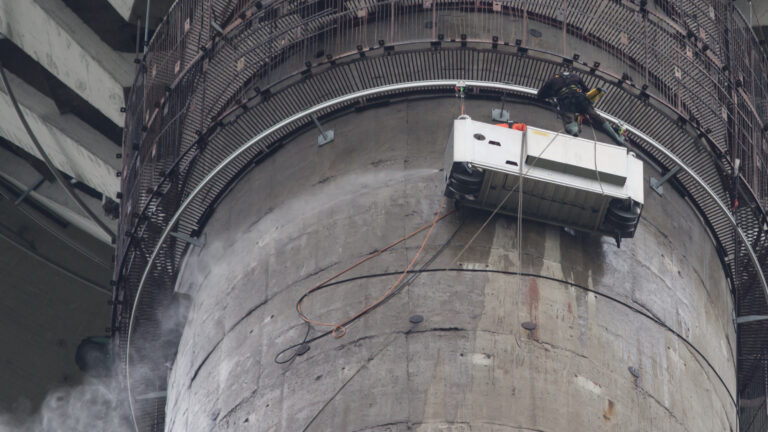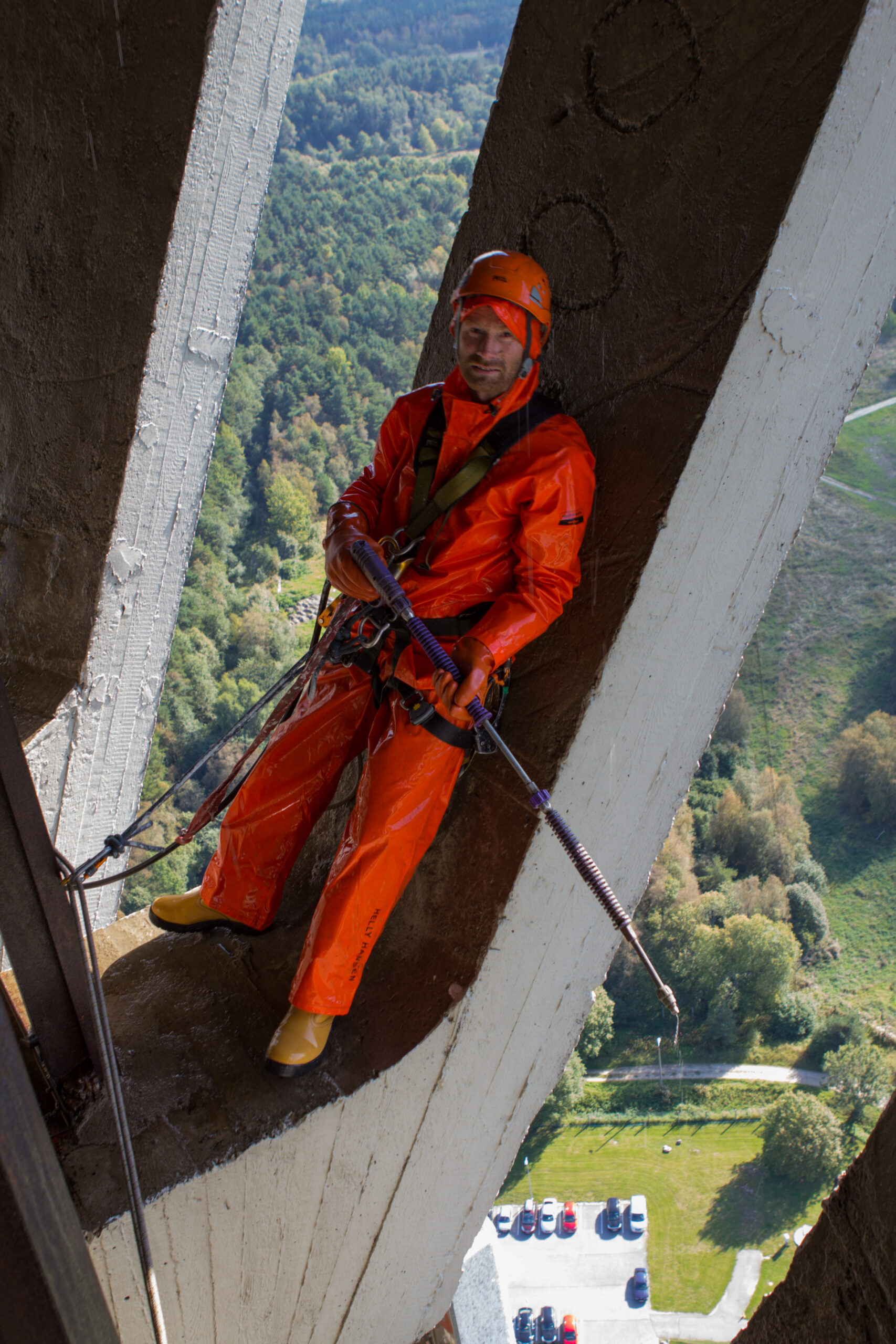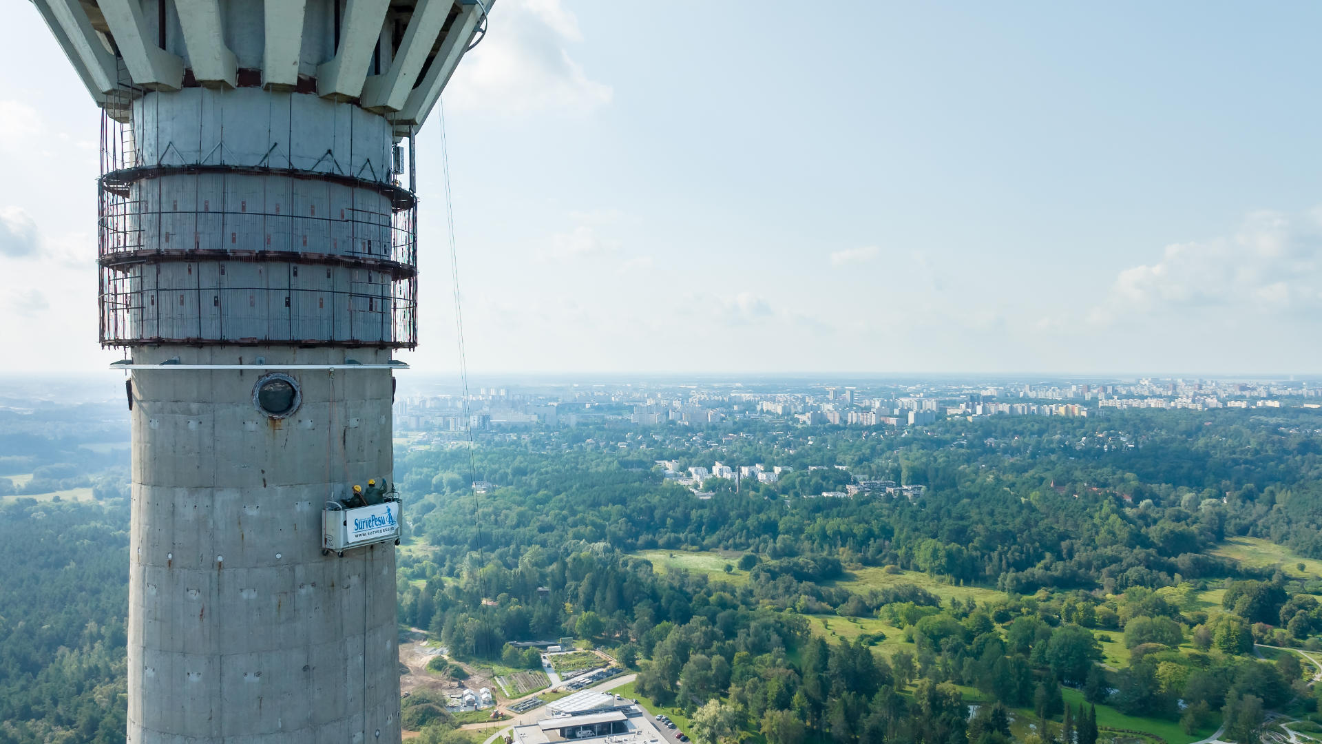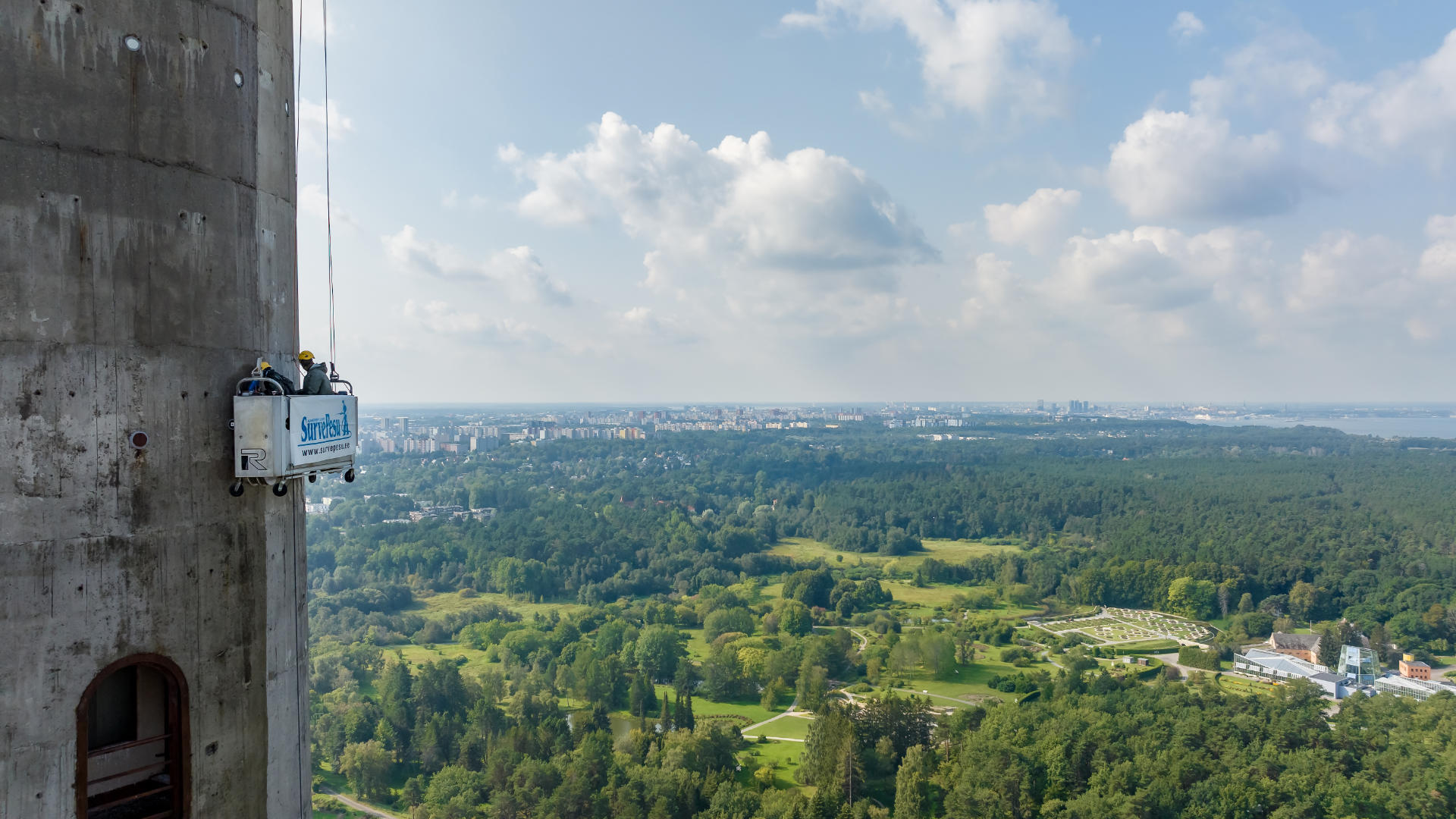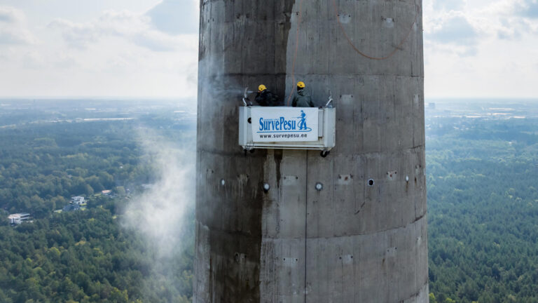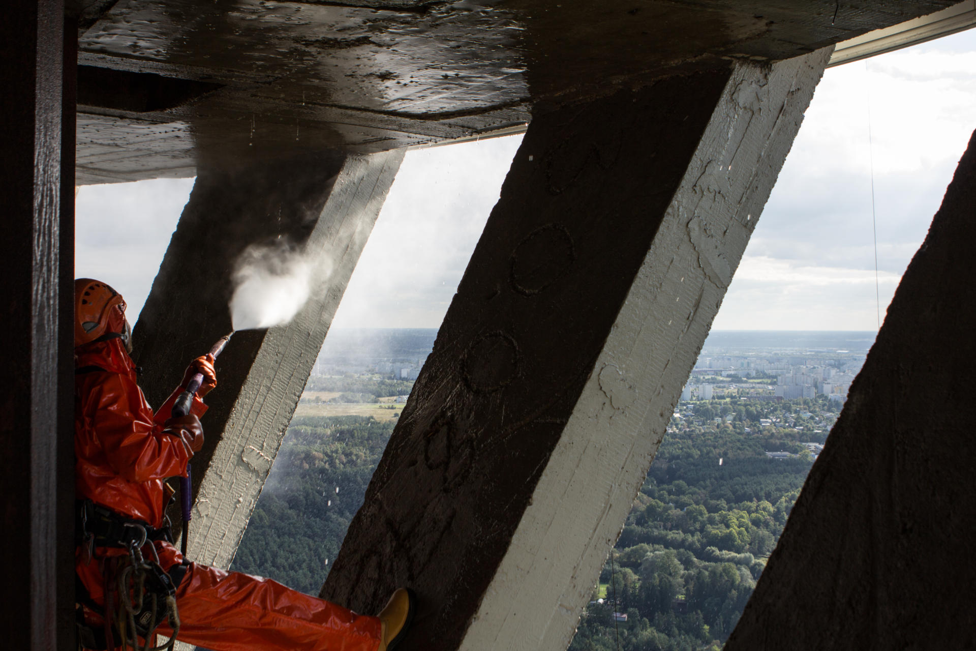 Teletorni betoonpinna puhastamine 500 BAR kuumvesikõrgsurvepesu meetodil, eeltööna betoonpinna värvimiseks. Puhastusmeetodi tulemusel saavutatakse hea nakkepind värvile, eemaldatakse olmemustus, rohekasvud ja karboniseerunud betooni lahtised osakesed.