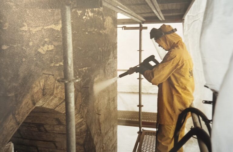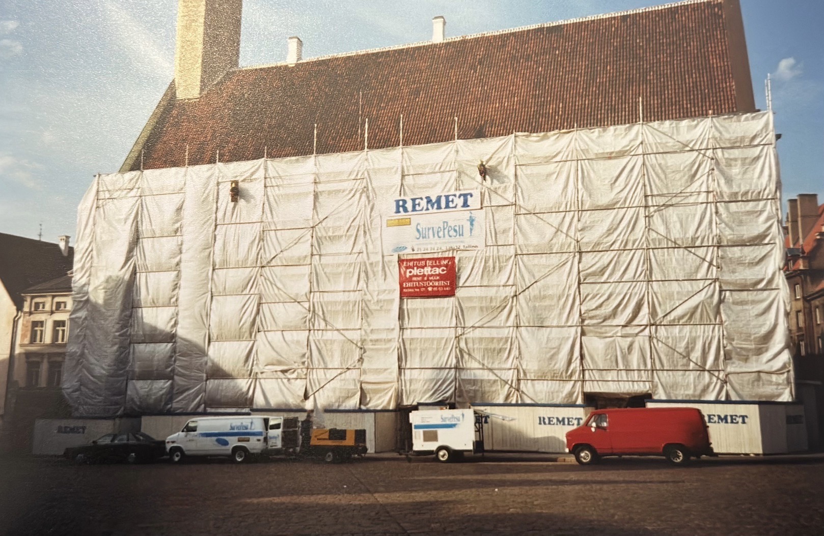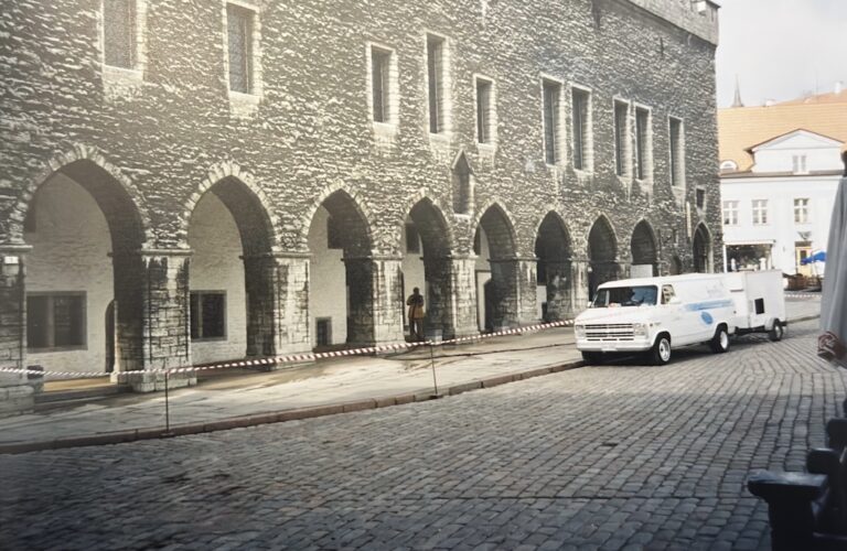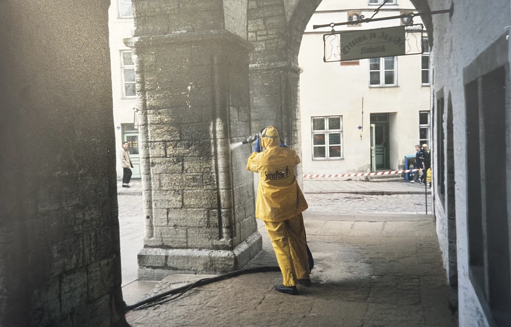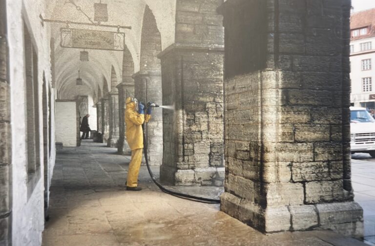 Tallinna Raekoda fassaadi puhastamine. Raekoja plats 1 Tallinn. Paekivifassaadi puhastamine märgliivapritsi meetodil.
