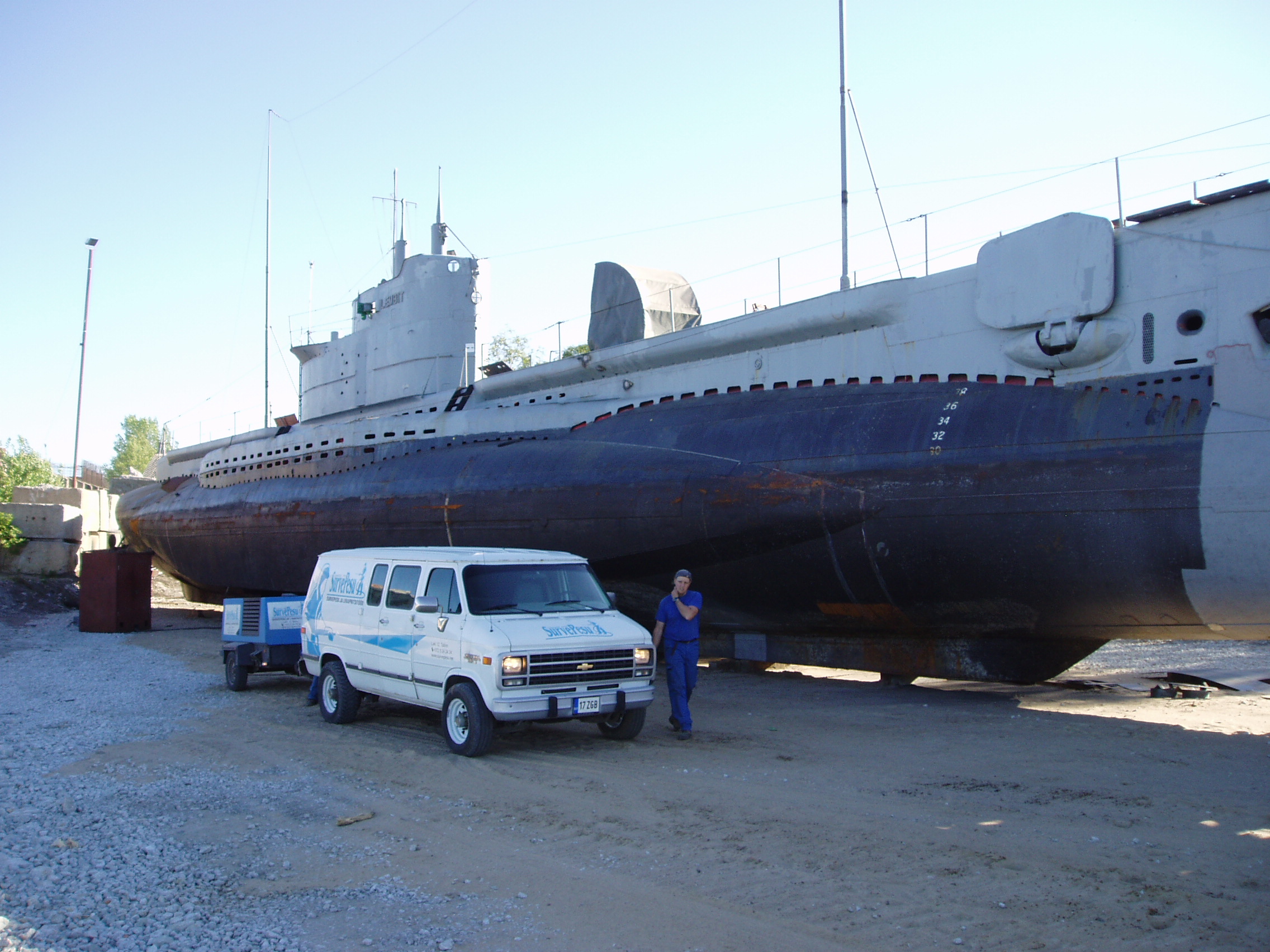 Allveelaev “Lembitu” puhastamine peale kaldale vintsimist 500 BAR kuumvesikõrgsurvepesu ja kuivliivapritsi meetodil.