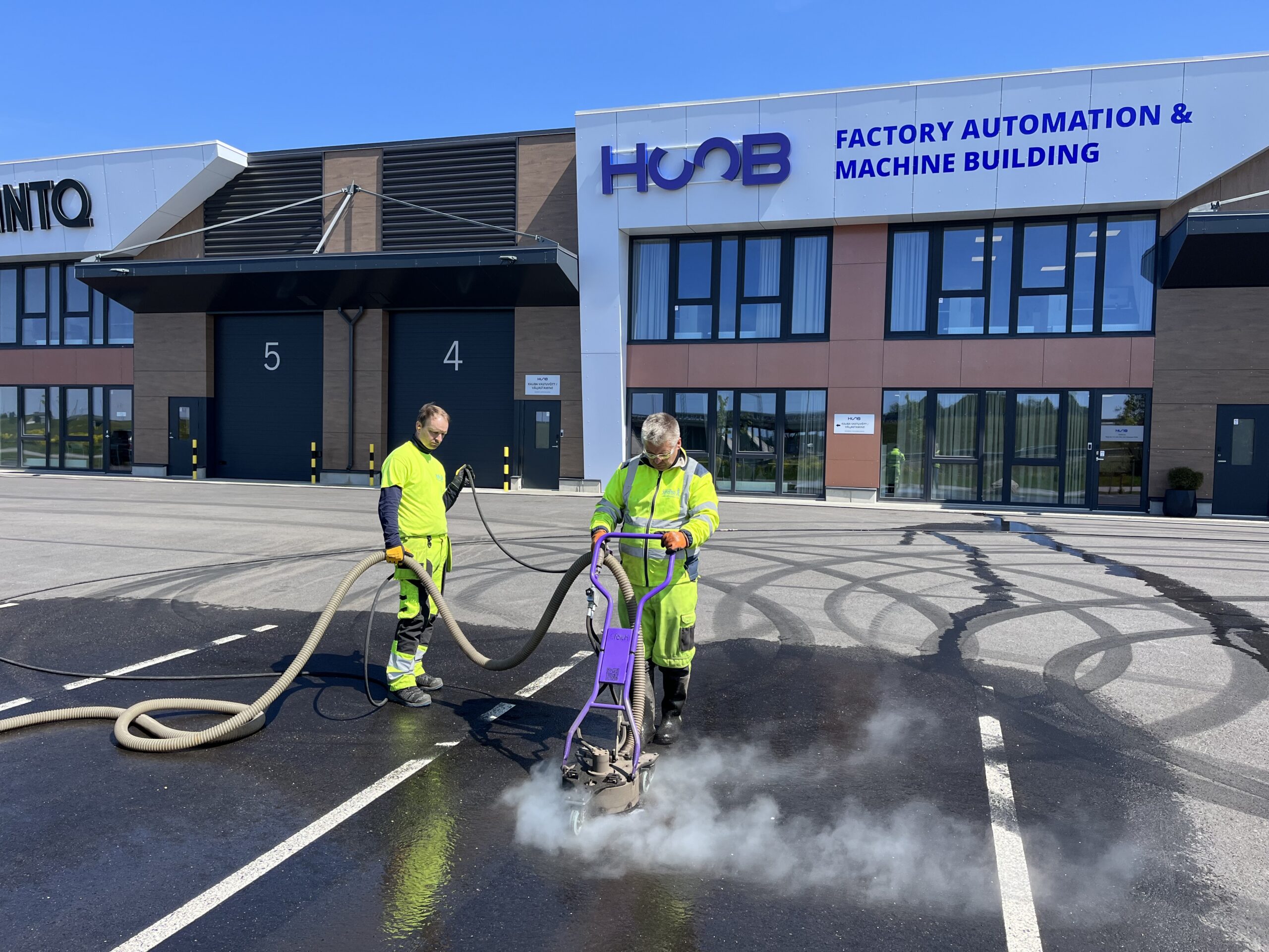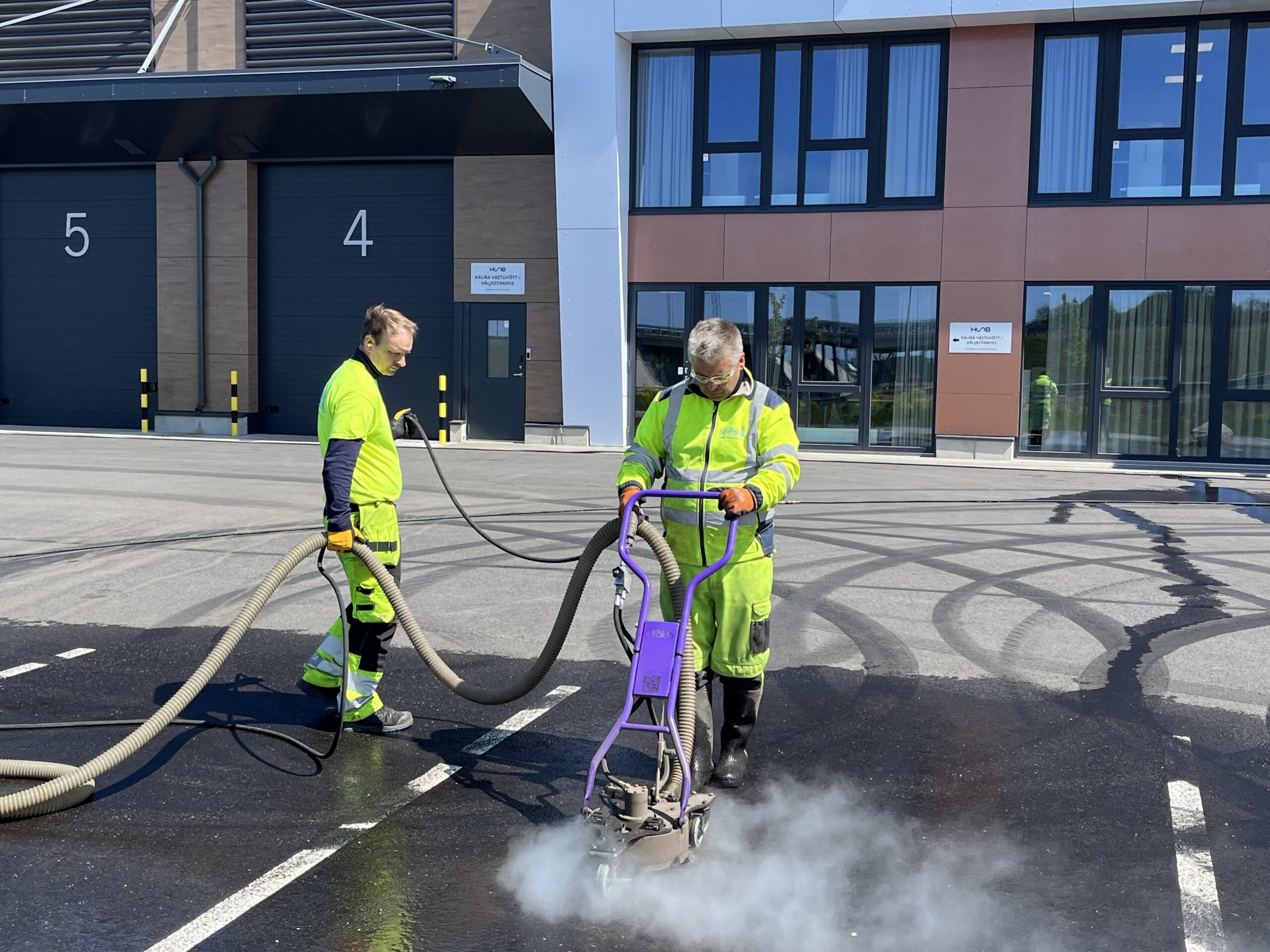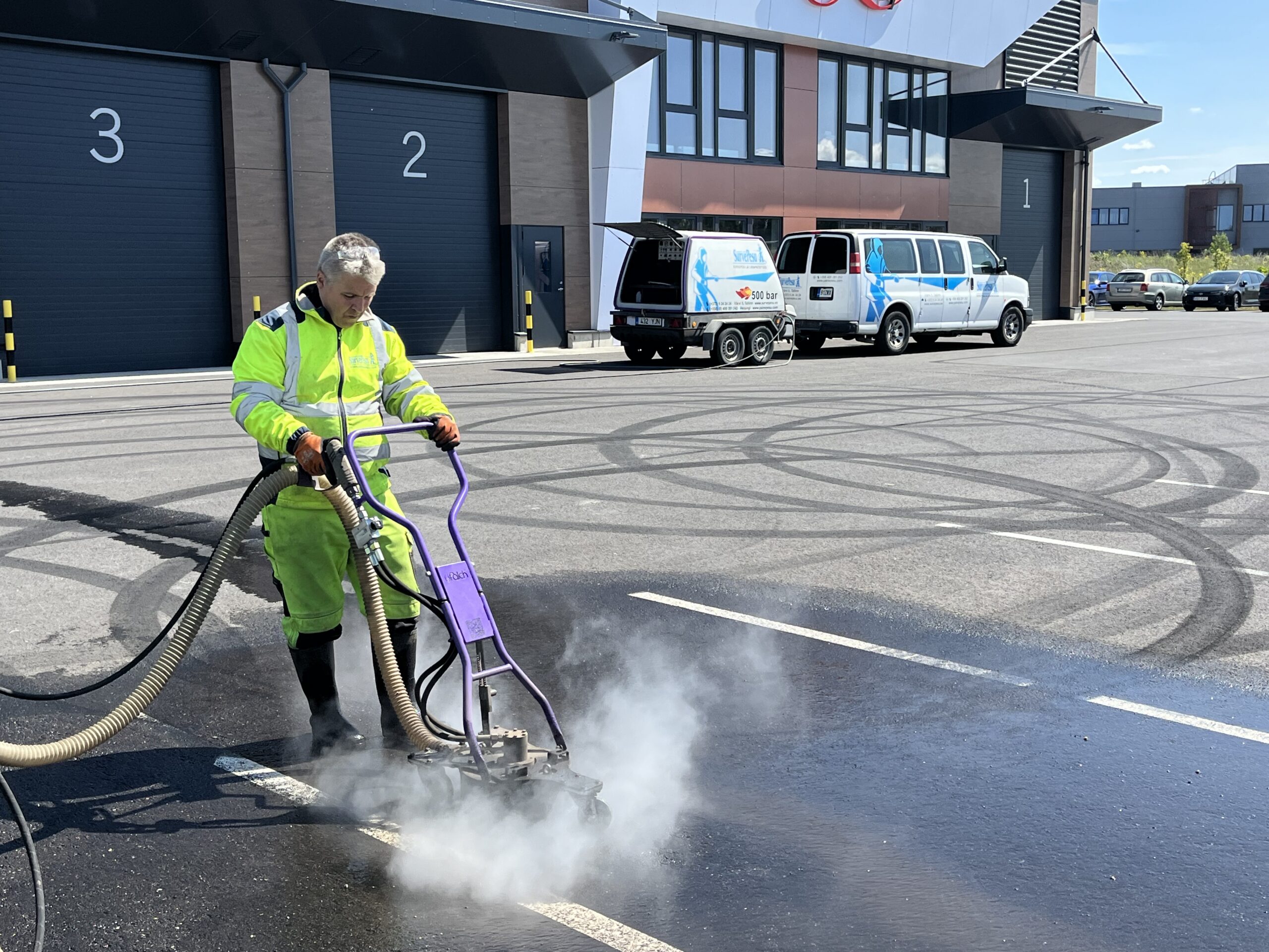 Driftijälgede eemaldamine asfaldilt Skeiter kuumvesikõrgsurvepesu meetodil.