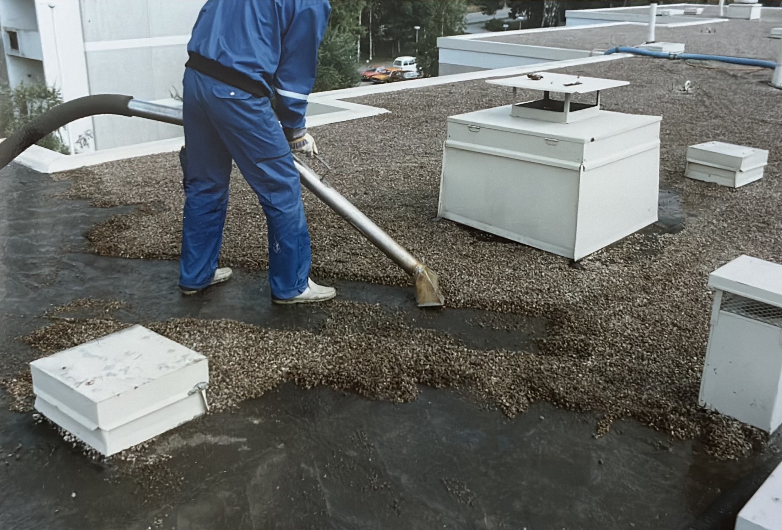 Graniitkillustiku imu bituumenkattega lamekatuselt kuivimuriga.