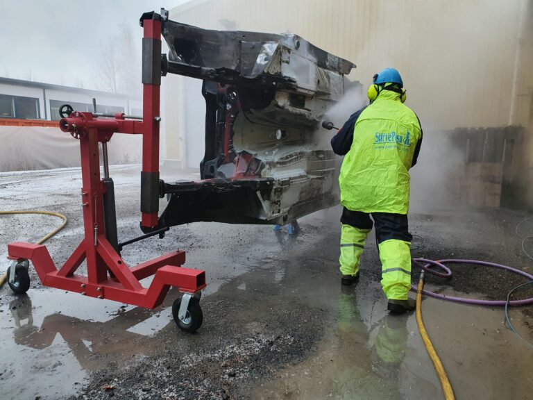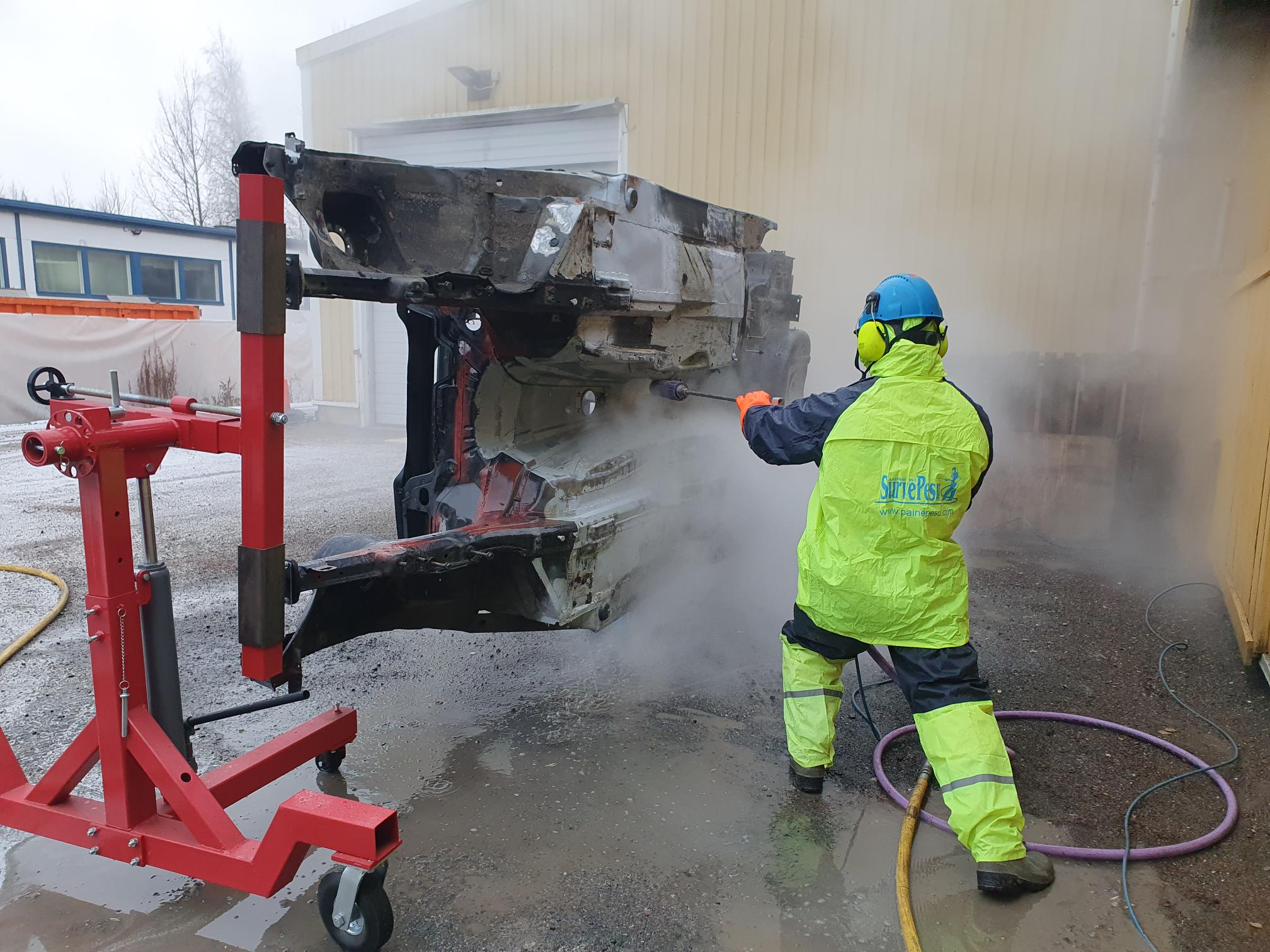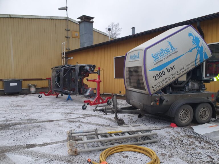 Ralliauto kere puhastamine mastiksist UHP 2500 BAR pesu meetodil.