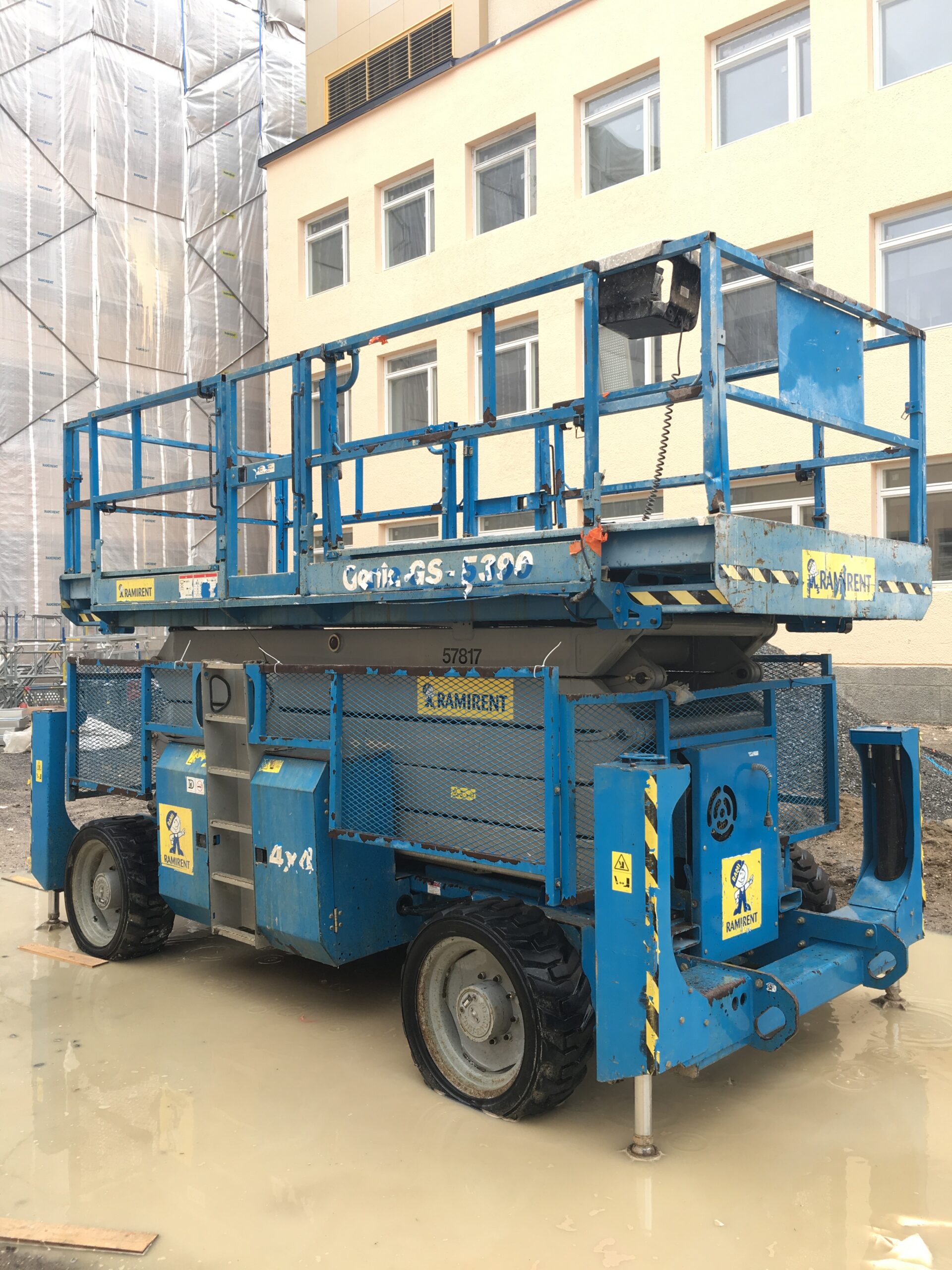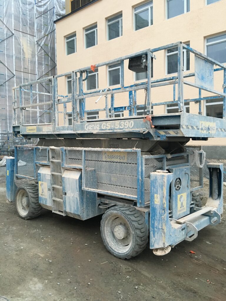 Ramirent tõstuki pesu betoonist, krohvisegust ja fassaadivärvist 500 BAR kuumvesikõrgsurvepesuga.