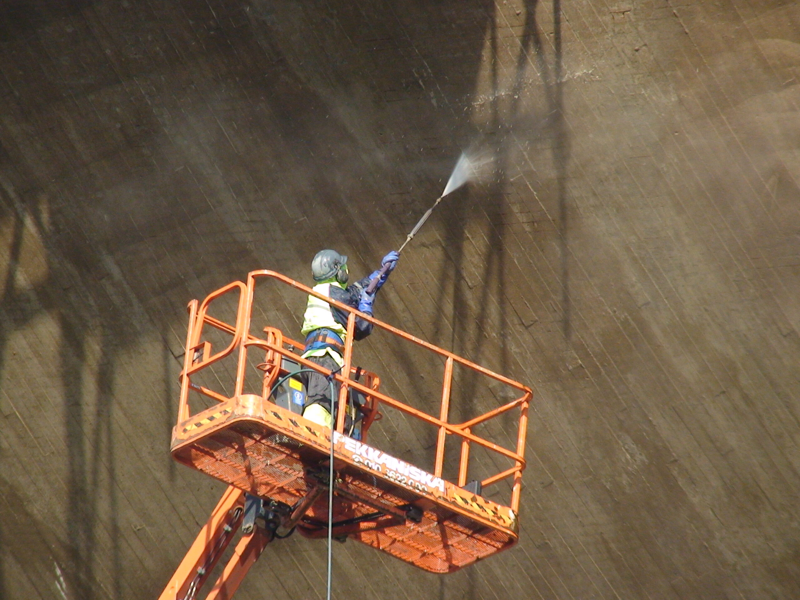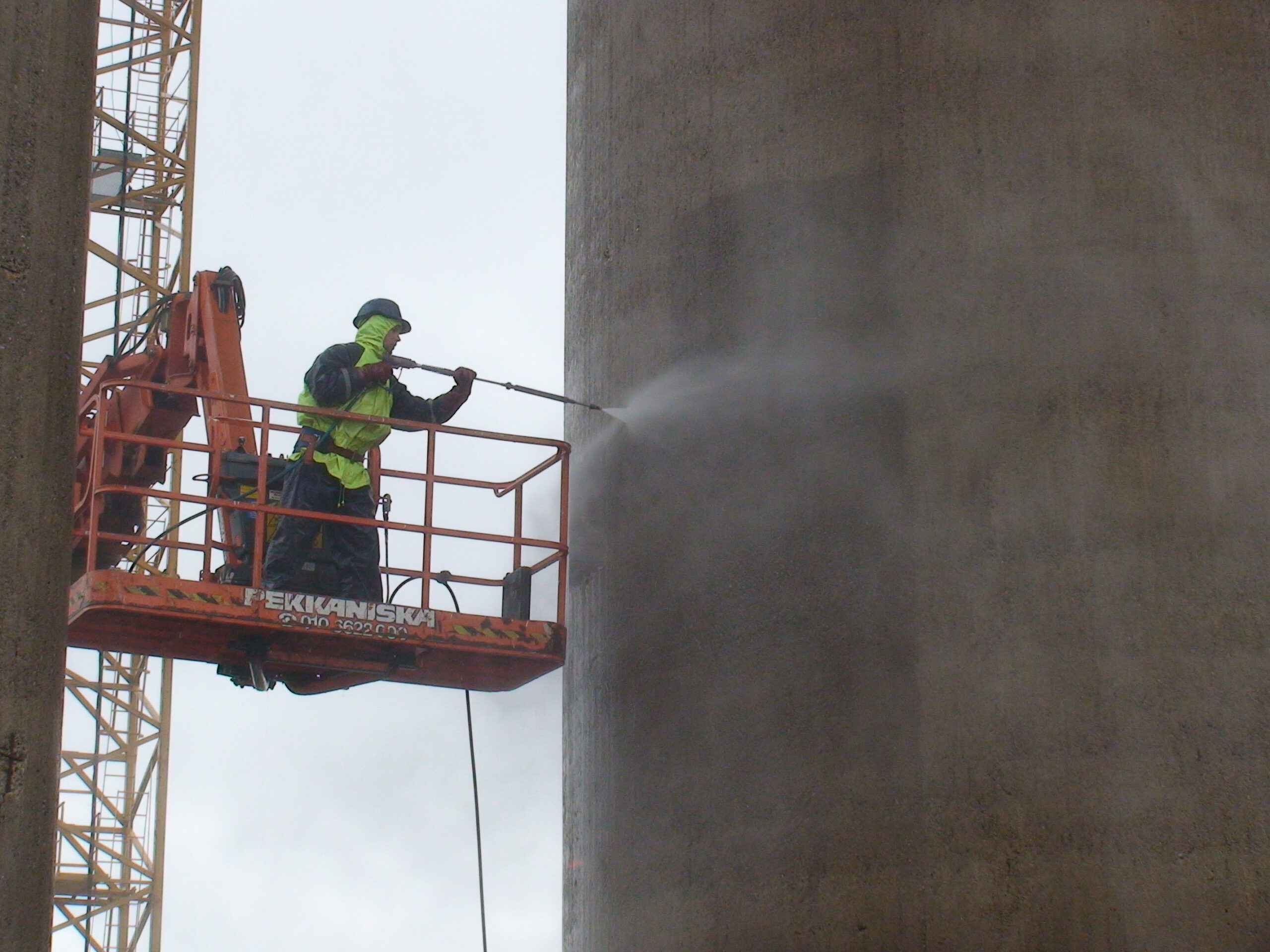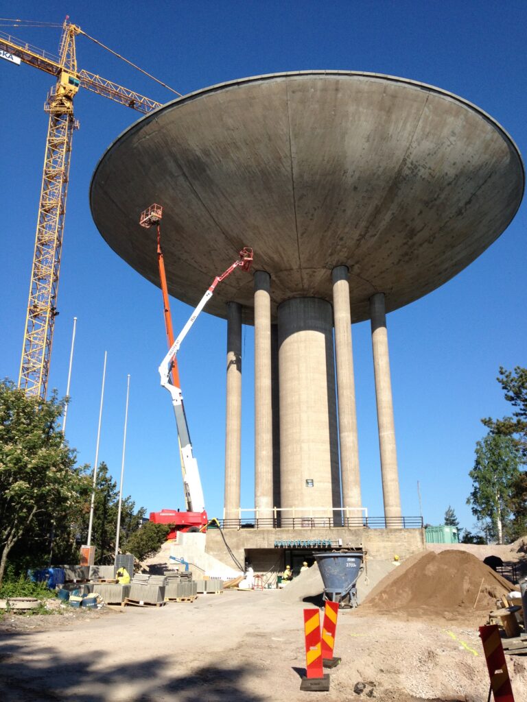 Veetorni betoonpindade puhastamine 500 BAR kuumvesikõrgsurvepesu meetodil.