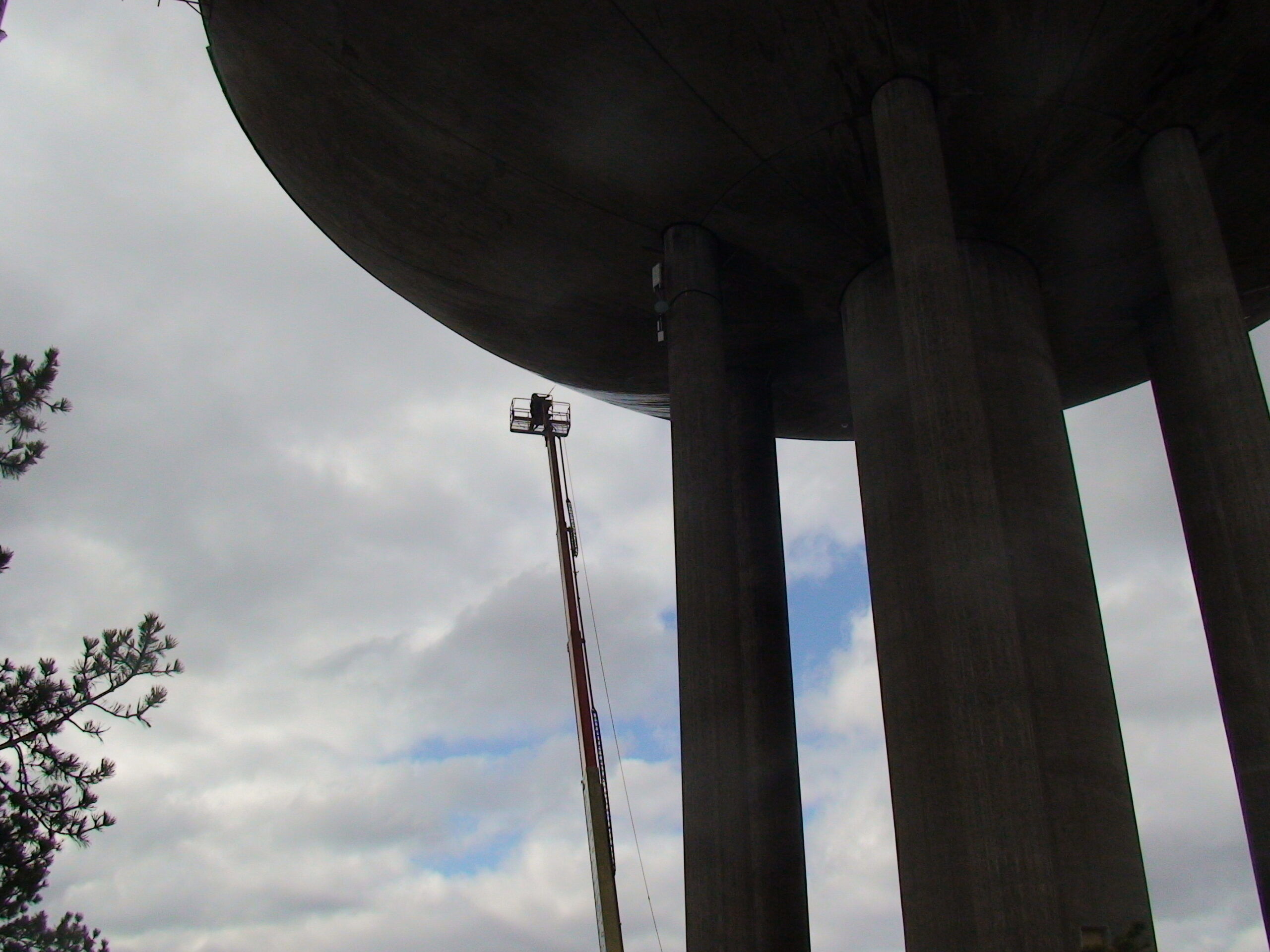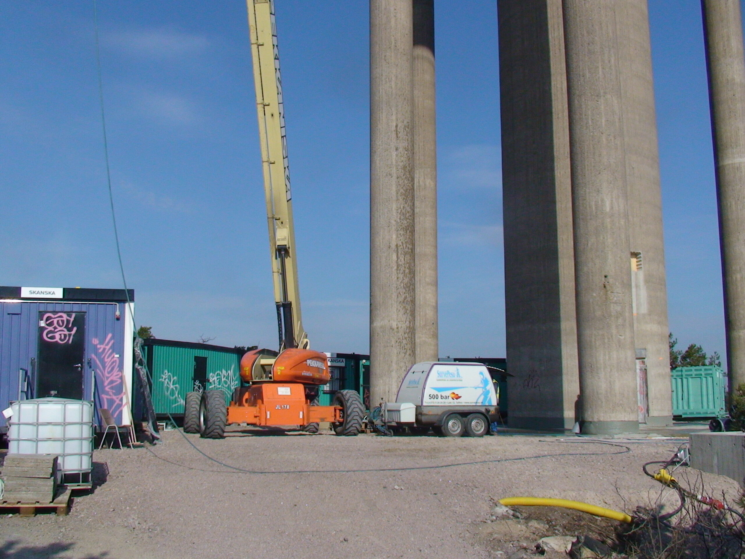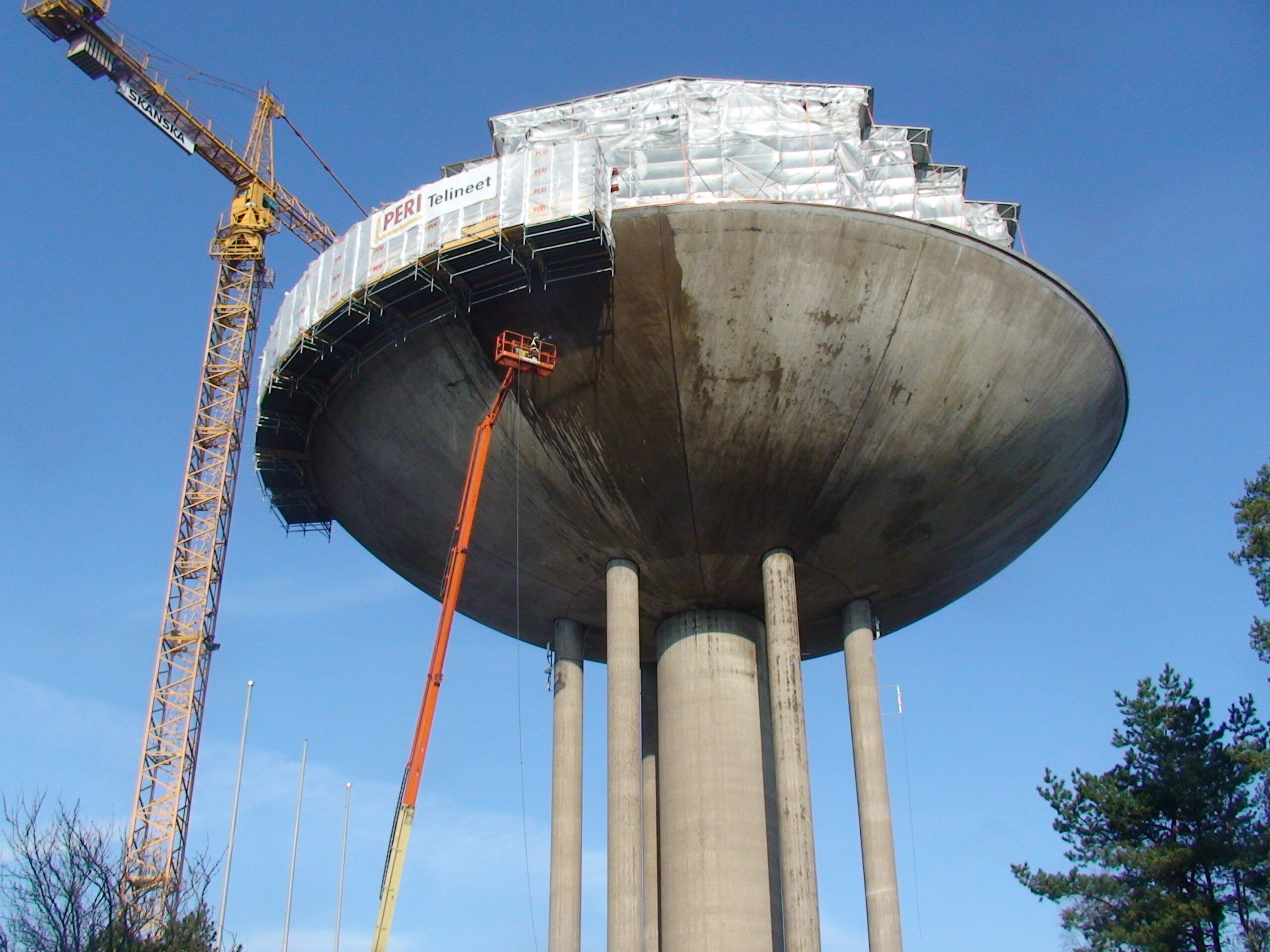 Veetorni betoonpindade puhastamine 500 BAR kuumvesikõrgsurvepesu meetodil.